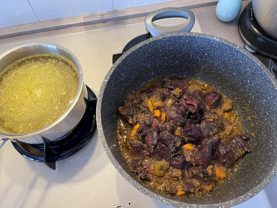 3kg di carne di daino (o di cervo) 3 coste di sedano 4 carote 2 cipolle 2 stecche di cannella…